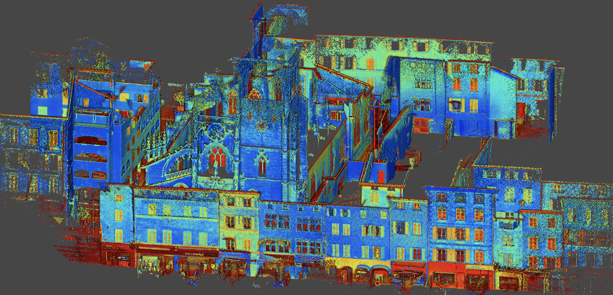 La structure architecturale complexe de l’église Notre-Dame des Marais, avec ses détails ouvragés et ses formes irrégulières, a permis de mettre en évidence l’efficacité du G_SLAM_PRO. En parcourant les ruelles qui entourent cette église emblématique, nous avons pu capturer chaque détail, créant un modèle numérique précis. Ce modèle pourra être exploité pour diverses applications, qu’il s’agisse de la conservation du patrimoine, de l’analyse structurelle, ou encore de la modélisation 3D pour des projets de réalité augmentée.