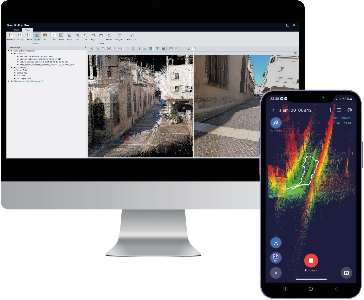 Le G_SLAM_PRO se distingue par bien plus que sa simple fonction de scanner. Cet équipement de nouvelle génération est conçu pour allier rapidité et précision, même dans les environnements urbains les plus complexes. Grâce à sa capacité à scanner en mouvement, il nous permet de générer des données tridimensionnelles d’une grande finesse, tout en maintenant une qualité optimale, ce qui est crucial pour des relevés en milieu urbain.