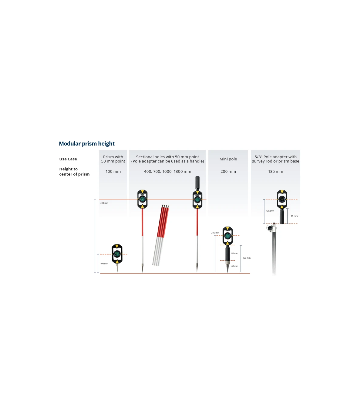 - Hauteur centre prisme : 50mm